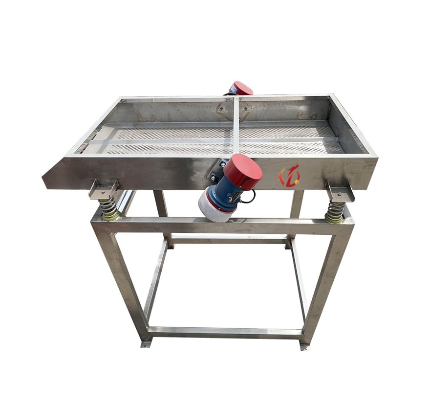 Мытые фрукты подвергаются вибрации для удаления поверхностной влаги, что облегчает их сушку на воздухе и служит ровной поверхностью. Линейный вибросито серии SZF, изготовленное из пищевой нержавеющей стали, использует вибромотор для вибрации продукта, удаляя поверхностную влагу и одновременно перемещая продукт по прямой. В линейном вибросите серии SZF в качестве источника вибрации используется электрический вибратор, который подбрасывает материал на сито, одновременно перемещая его по прямой, обеспечивая удаление воды благодаря правильно подобранному ситу.