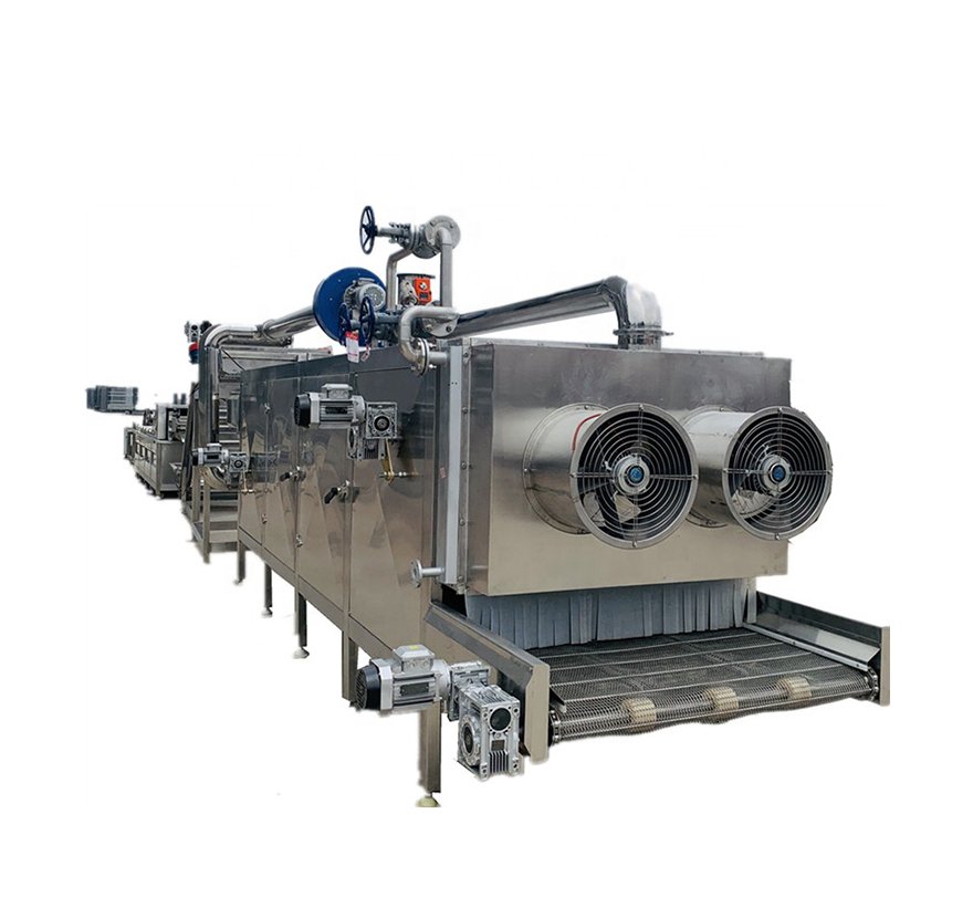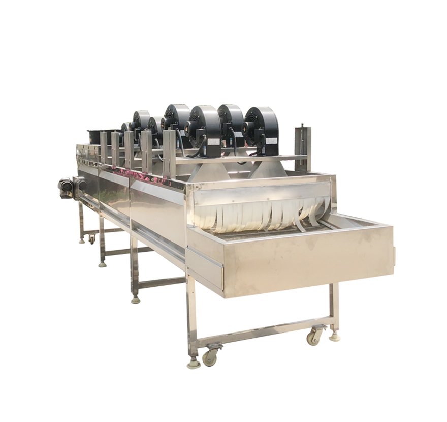 Особенности: Машина использует паровой нагрев и оснащена паровым нагревателем. Тепло передается в сушилку через вентилятор, испаряя воду. Над машиной установлен осушающий вентилятор для удаления испаренной воды. Материал транспортируется по пятислойной сетчатой ленте для сушки.
