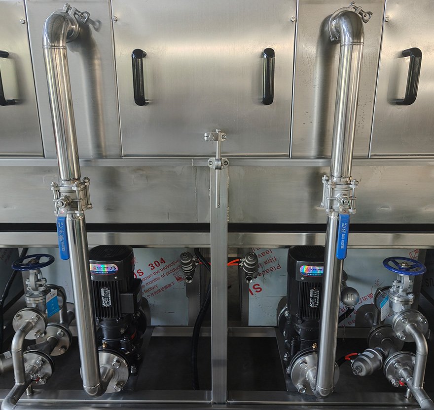 Это основа нашего оборудования. Оно использует циркуляционную систему распыления. Распылительная головка, оптимизированная с помощью гидродинамики, обеспечивает равномерное и плотное покрытие капель воды до самых краёв бутылки/банки, исключая «слепые зоны» стерилизации. Такая конструкция обеспечивает полноценный обмен тепловой энергией с продуктом, что значительно превосходит эффективность стерилизации традиционными иммерсионными системами.