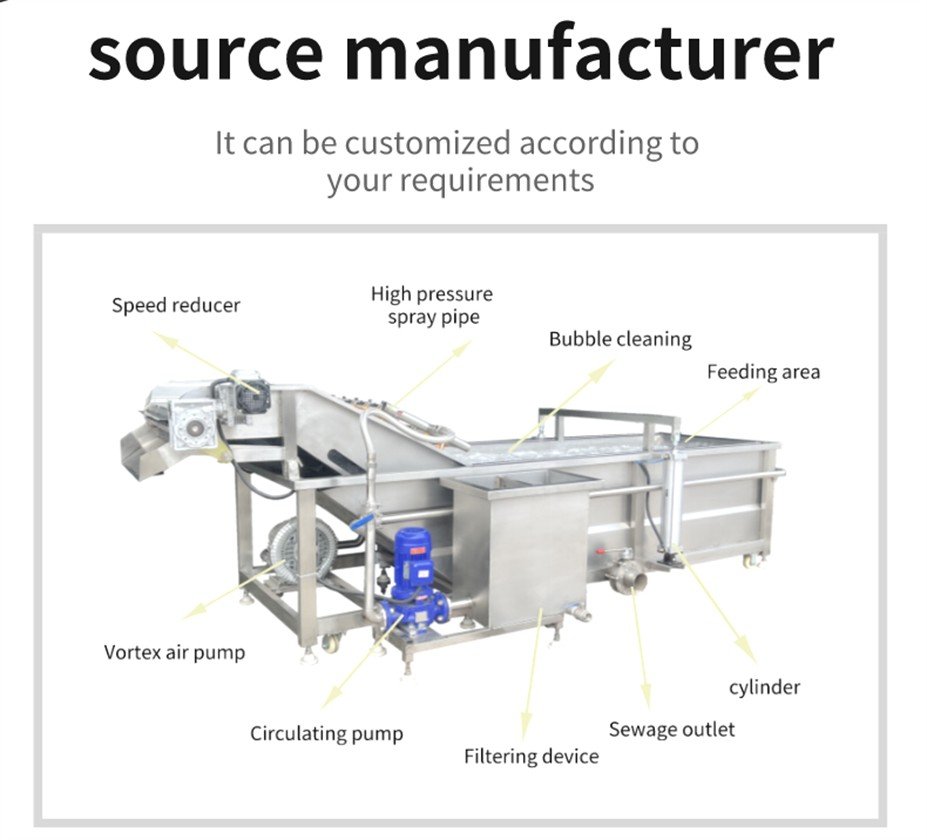 Пузырьковая моечная машина в основном используется для очистки овощей, водных продуктов, фруктов и сухих продуктов.