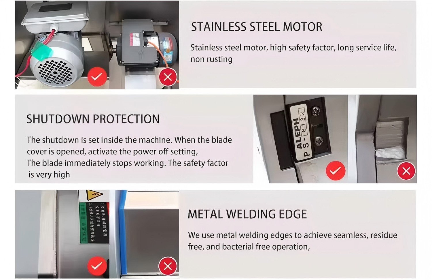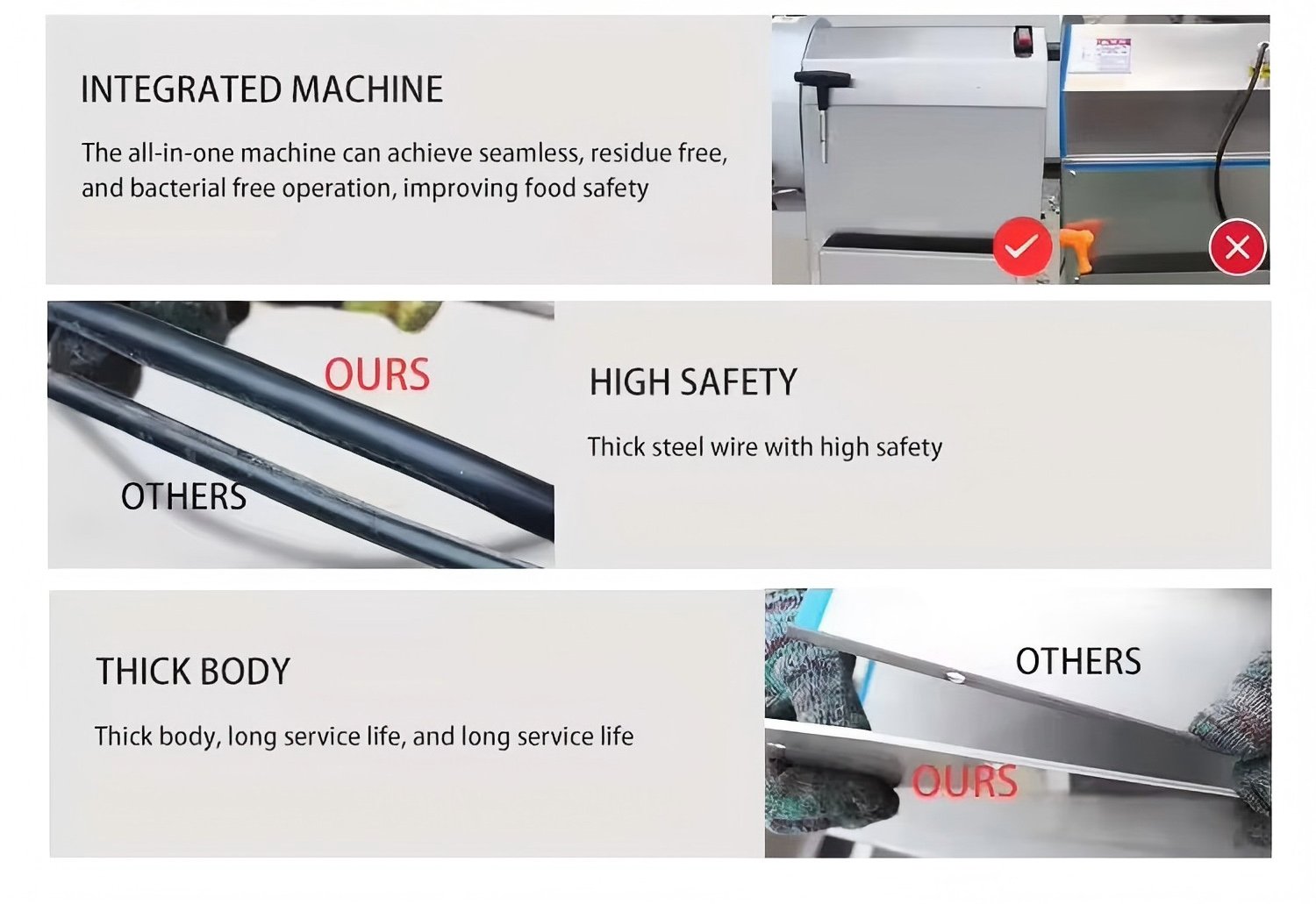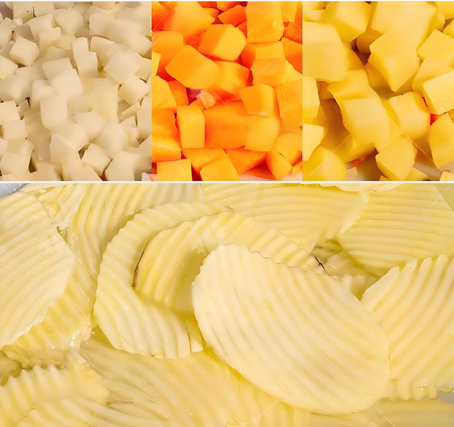 Низкая эффективность, неравномерная толщина и высокие потери материала. Они широко используются в пищевой промышленности и могут быть гибко адаптированы к свойствам материала (твёрдость, прочность, вязкость) и требованиям к нарезке (толщина, форма). Они являются незаменимым оборудованием для предварительной обработки или переработки в крупносерийном производстве.