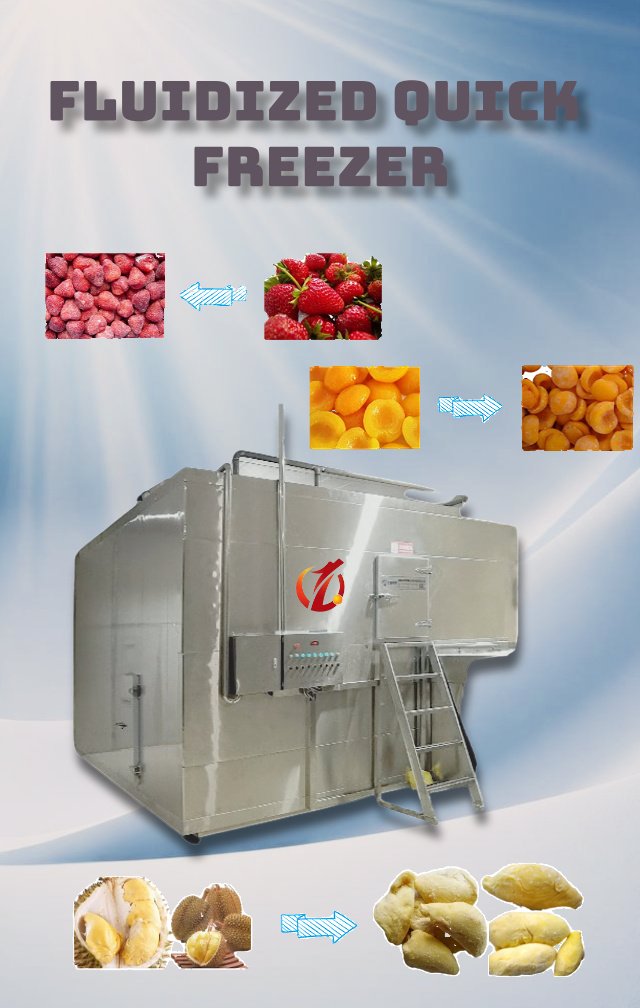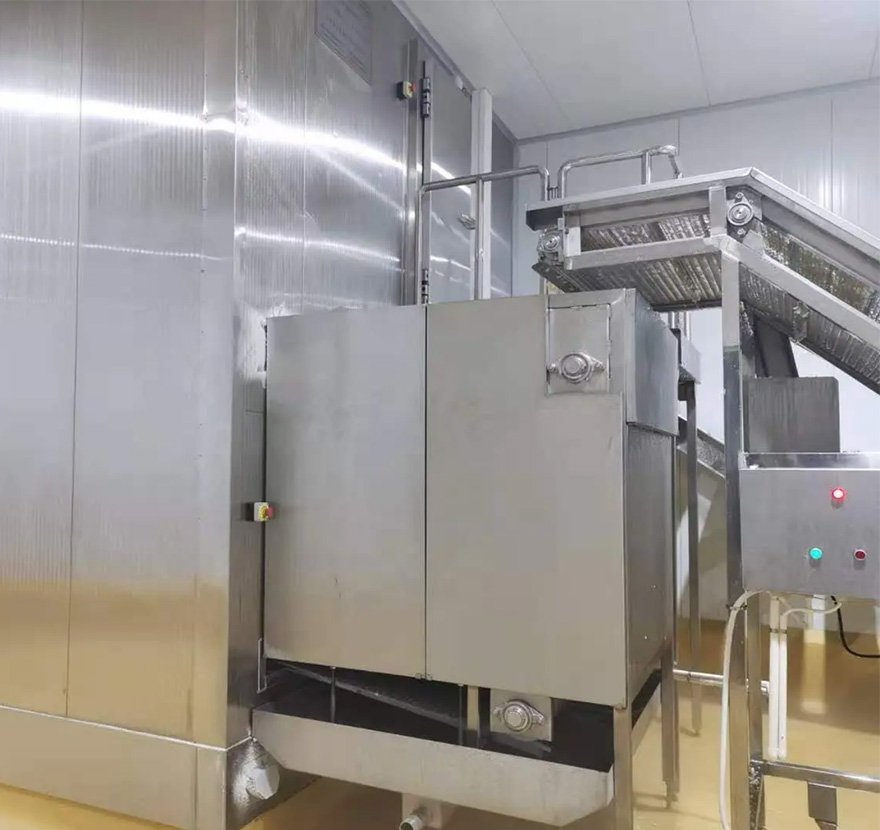 7. Дверца камеры имеет двойное уплотнение и оснащена электронагревателем, что позволяет открывать её в любой момент для предотвращения замораживания и прилипания продуктов. 8. Конвейерная лента оснащена форсунками для промывки водой, которые можно открывать во время работы для обеспечения гигиены пищевых продуктов. Высоконапорный вентилятор из нержавеющей стали марки 304 сдувает капли воды, гарантируя, что они не повлияют на замораживание продуктов.