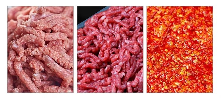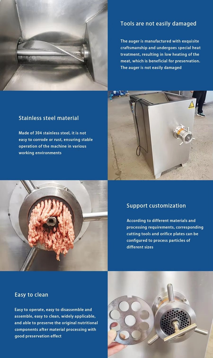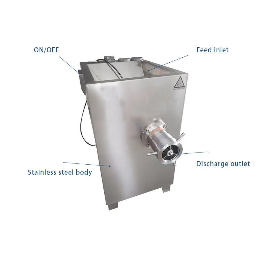 Мясорубка — это высокоэффективное устройство предварительной обработки, разработанное специально для современных предприятий пищевой промышленности. Она подходит для измельчения всех видов свежего и замороженного мяса, птицы и субпродуктов. Её основное преимущество — стабильная механическая работа и точный контроль процесса измельчения, что значительно повышает качество фарша и эффективность производства. Она идеально подходит для производства таких продуктов, как колбасы, ветчины, фрикадельки, фарш и готовые блюда.
