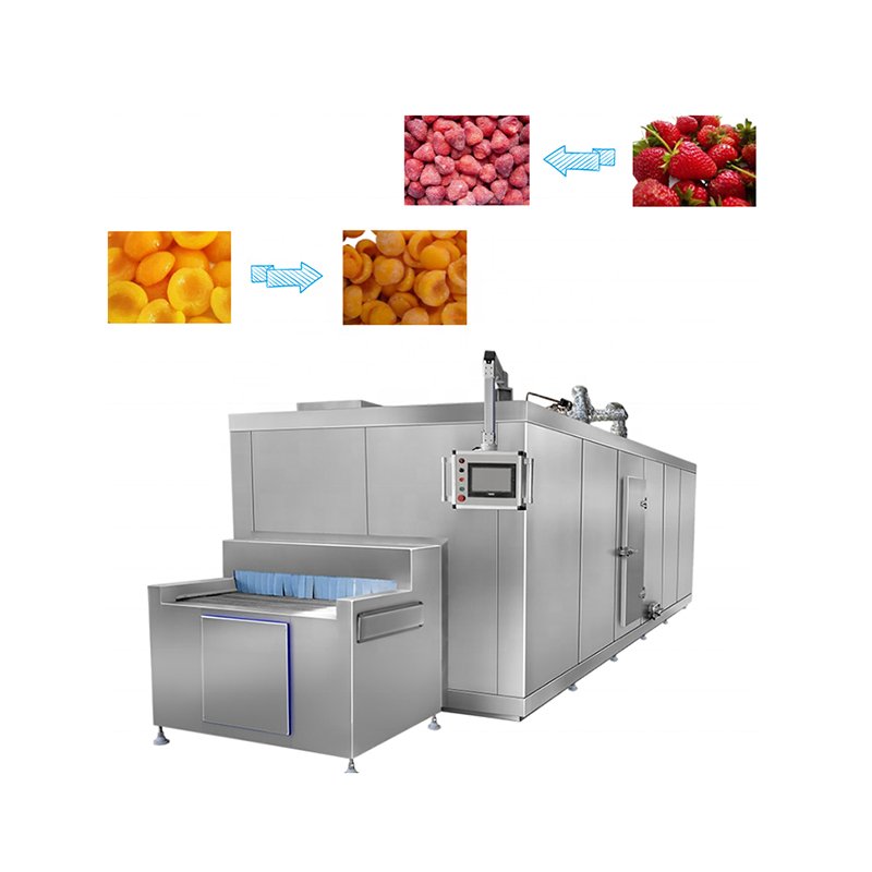 Туннельный морозильный аппарат – это высокотехнологичное устройство непрерывной быстрой заморозки, сочетающее в себе технологии охлаждения, машиностроения и обработки пищевых продуктов. Он имитирует туннельную структуру, позволяя продуктам непрерывно перемещаться по конвейерной ленте, быстро проходя через зону заморозки при температуре -35 °C или даже ниже за очень короткое время, обеспечивая переход от комнатной температуры к состоянию глубокой заморозки. Этот непрерывный режим работы «замораживание на ходу» является ключевым компонентом высокоэффективного и качественного производства в современной пищевой промышленности.